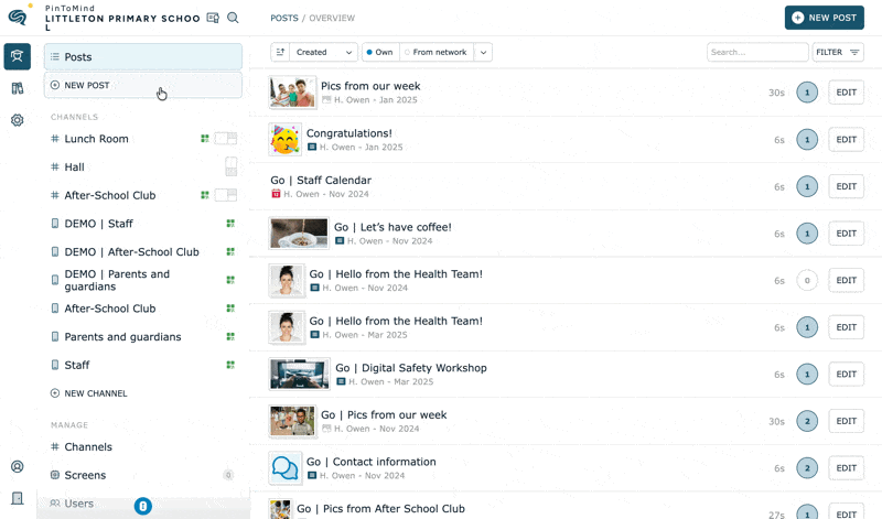 You can display the image-post in one area of the screen, or in full screen. This is selected for each channel, and you can show the same post in different areas on different channels.